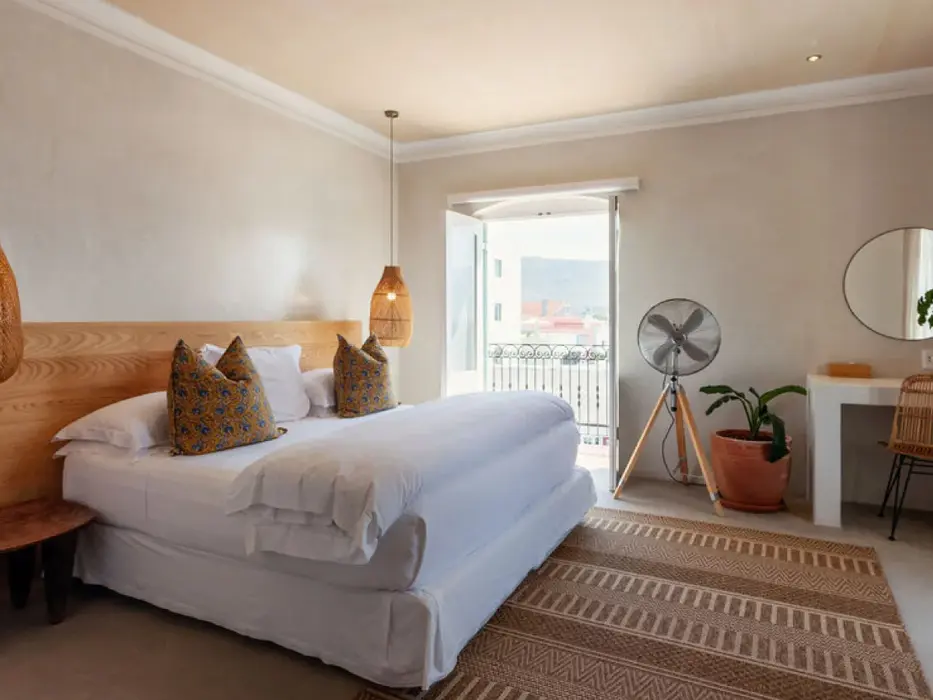 Located on the second storey of the main house, this elegant penthouse suite features a king-size bedroom opening onto a private balcony overlooking Walker Bay and Hermanus town.